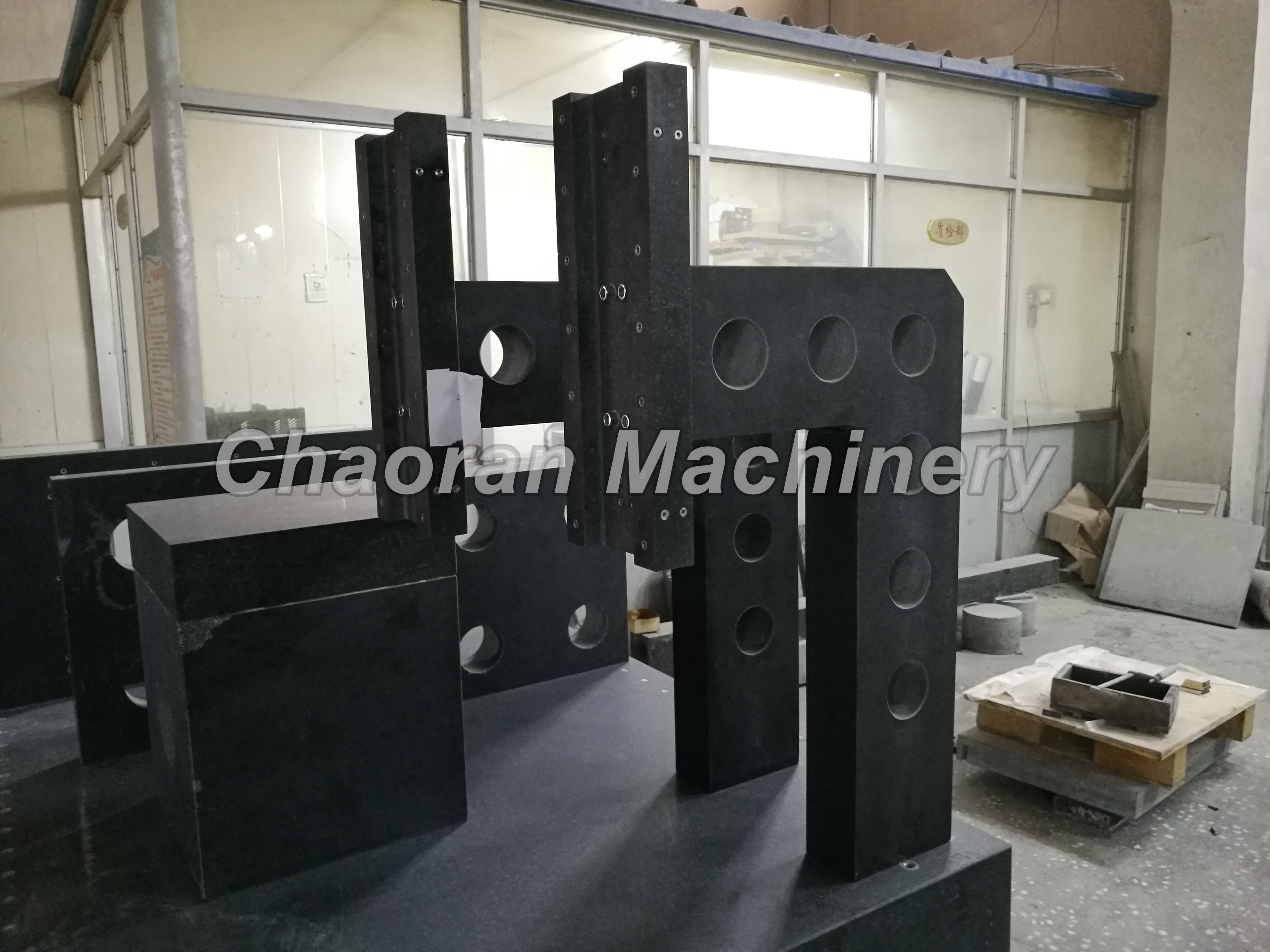 Granite components are as machine bed, base, machine gantry, machine bridge, machine pillar or machine air bearing to offer high precision surfaces so that precision machine can maintain high precision during working. More and more ultraprecision machines such as CMM machines are choosing granite components to replace metal machine bed.